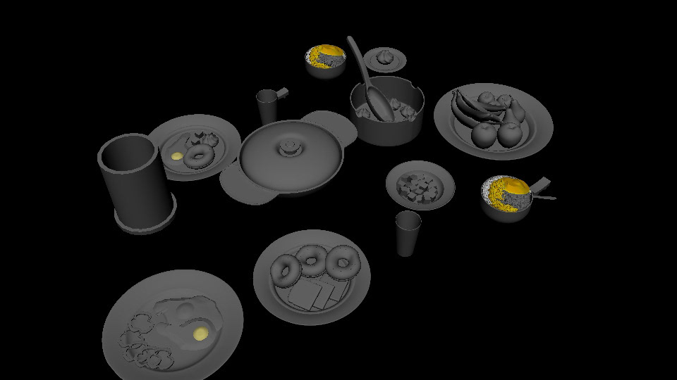 For the following senior film I created a trolley model as well as co-modeled a kitchen food set with a peer.